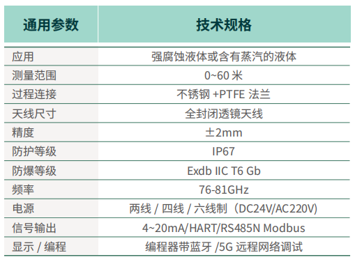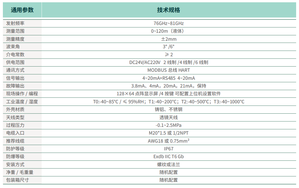 - 最窄 3°天线波束角,安装环境中的干扰对仪表的影响更小,安装更为便捷。