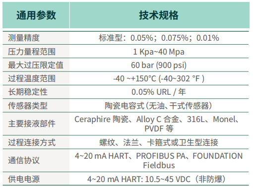 采用无油陶瓷传感器的 FPC200 智能高精度压力变送器,主要用于测量气体和液体的压力、液位、体积及质量。它特别适用于过程工业和卫生行业。核心的陶瓷测量元件使其在面对许多苛刻工况时,能表现出高度的稳定性和安全性。