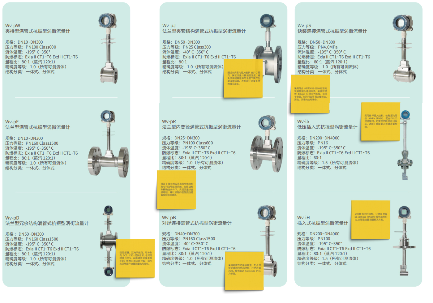 产品分为 Wv-p 及 Wv- 两⼤系列:Wv-p 系 列⽤于 DN10~DN300 管道流量测量,Wv-i 系列⽤于DN200~DN4000 管道流量测量加之众多的选项,更好地服务于客户需求。