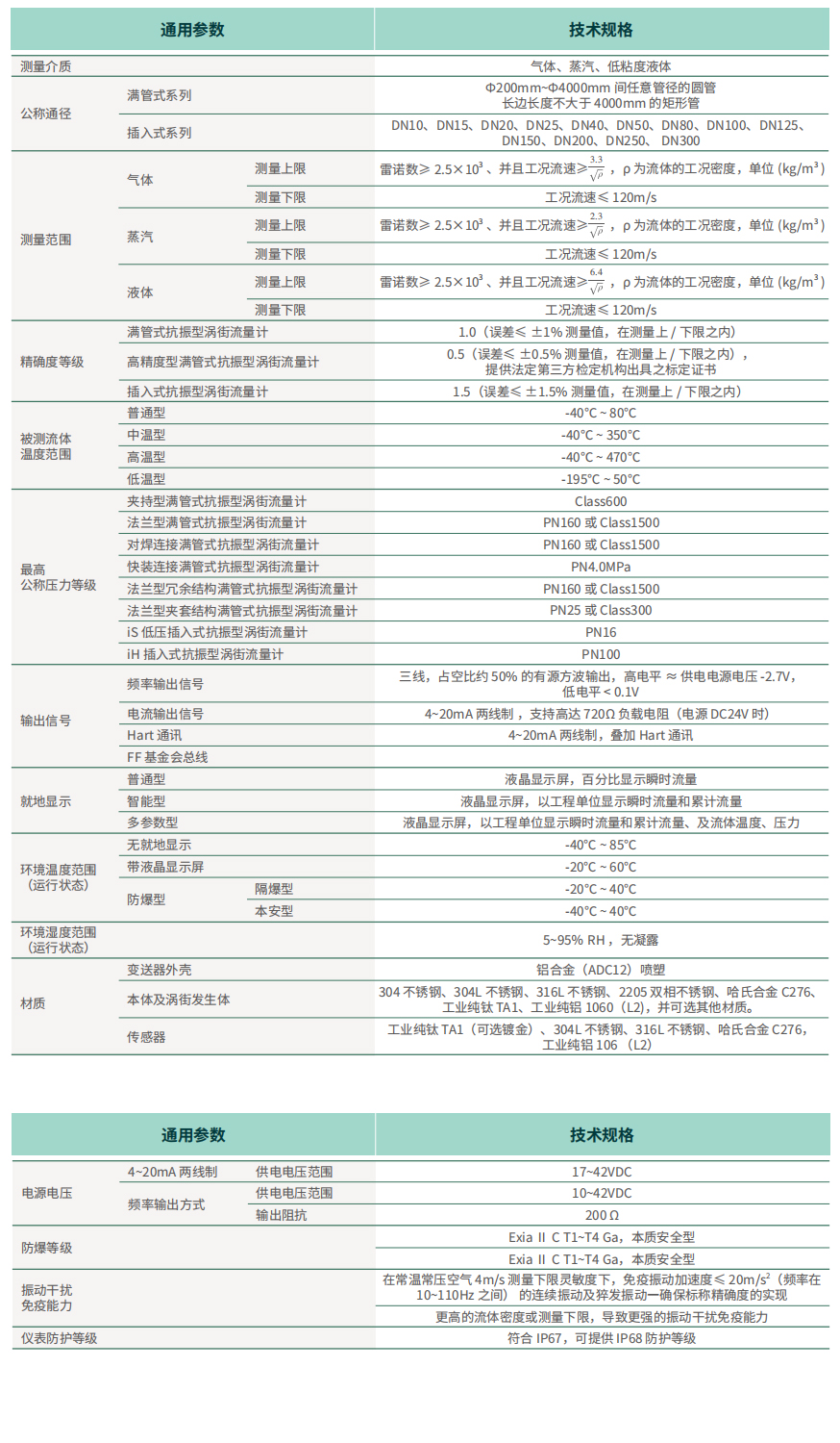 - 领先的扰能力,测量下限得以大幅度下延。结构坚固的主传80:1 量程比性能 : 源于产品领先的抗振动干感器确保高流速下的结构安全。全差动结构的高性能放大器及专利的大动态范 围涡街信号专用放大器,构建宽量程比所需的高动态范围、宽带信号处理系统。